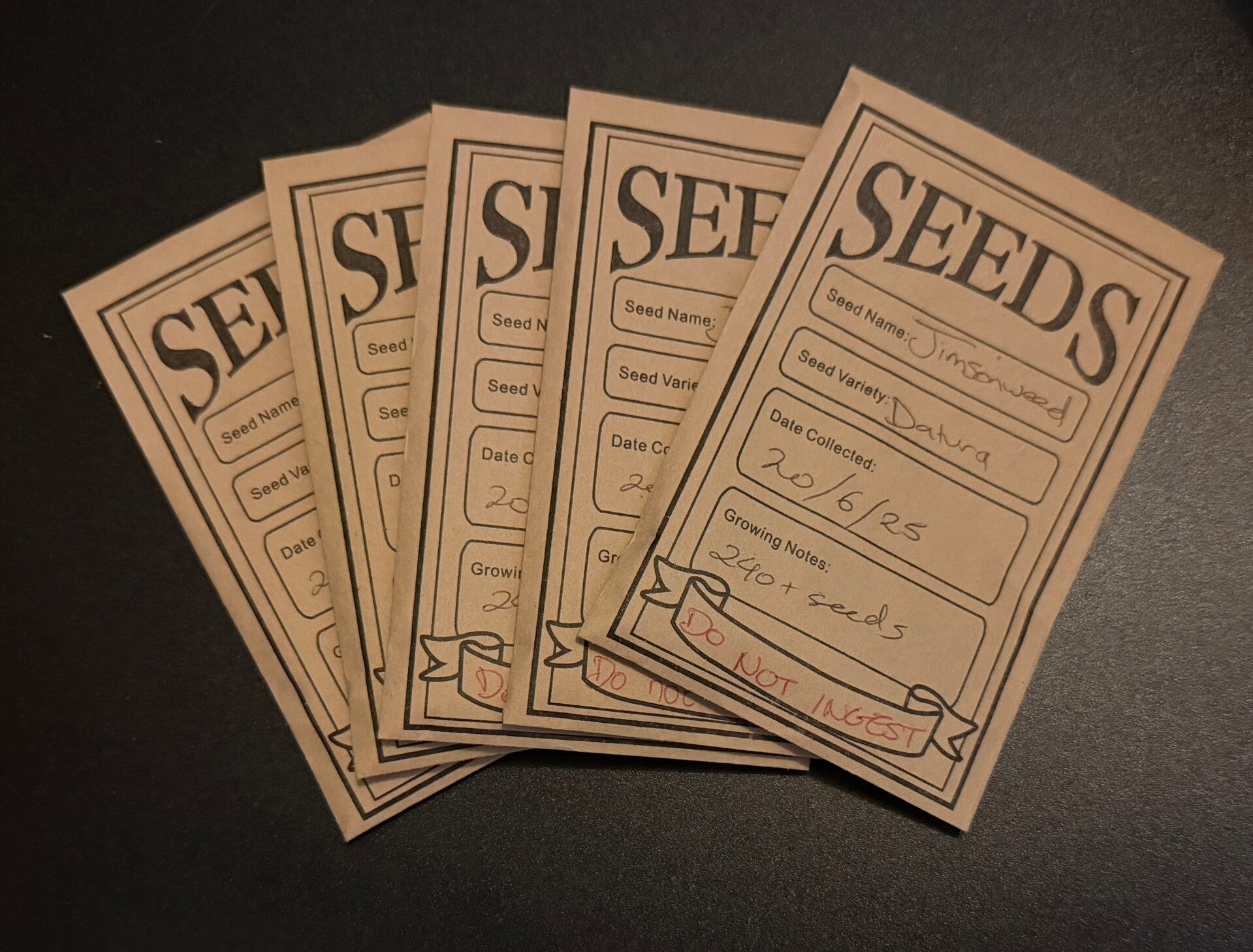 Responsibly resourced datura stramonium seeds. Easy to grow, can reach up to 5 ft tall and produce a white, cream or violet trumpet shaped flower also known as moonflower as it often blooms at night.