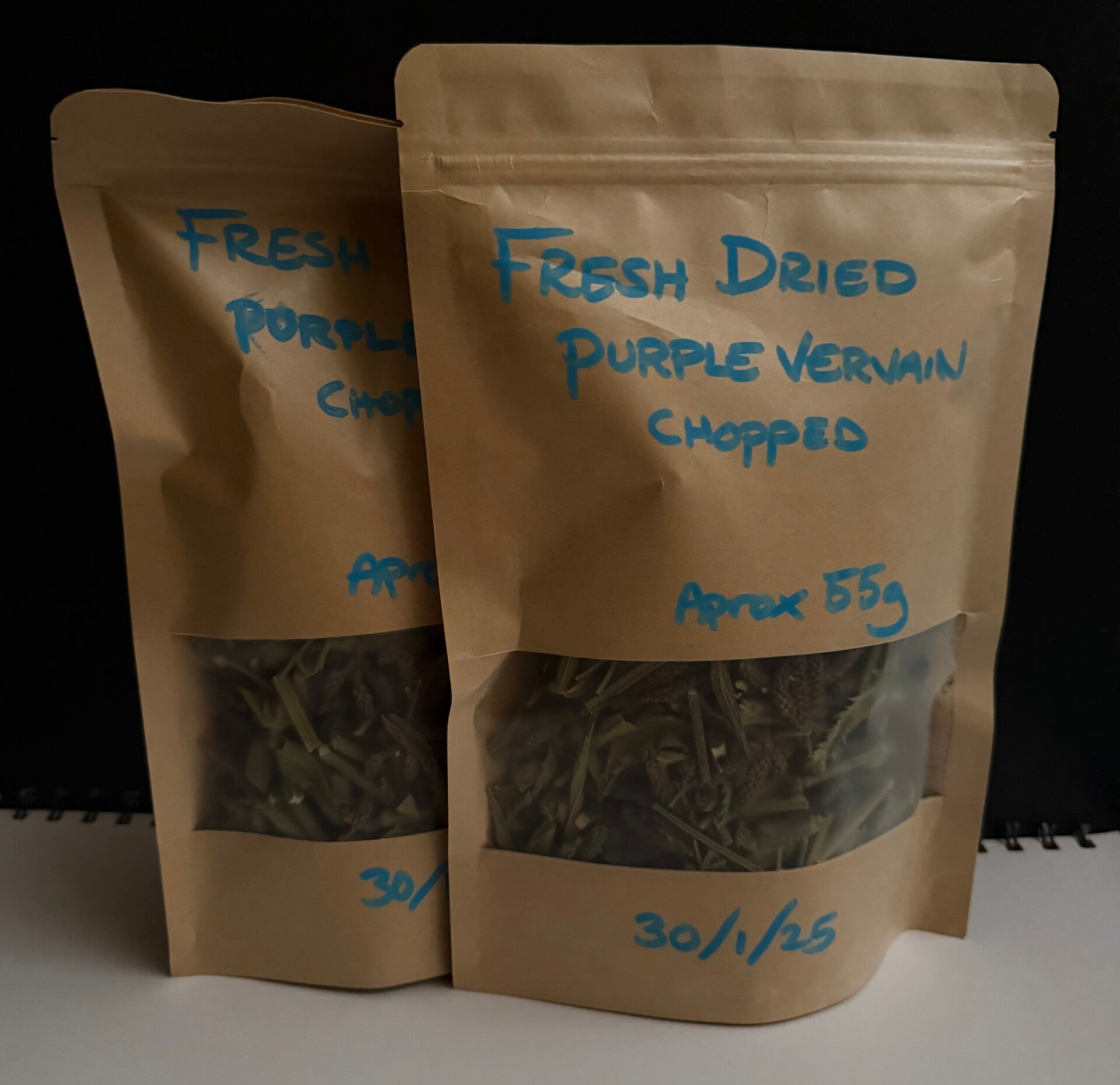Sustainably sourced from area away from pollution purple top vervain leaf stem and flower. Large amount. 85g