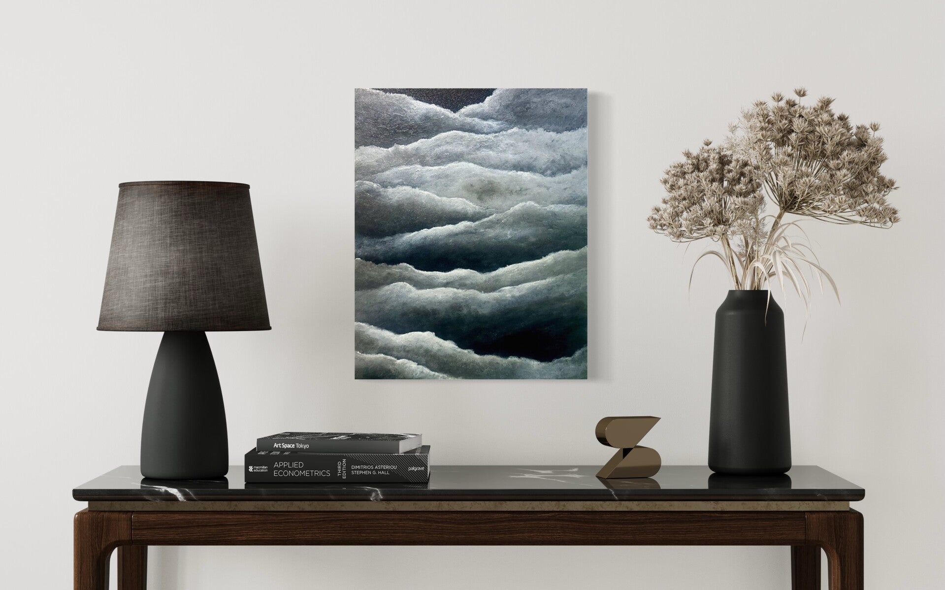 Black and white clouds handpainted in acrylic paint signed and sealed. This one is a reminder of the shining silver linings everywhere that we sometimes forget about.